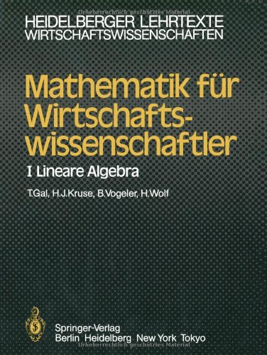 Read PDF Mathematik Fur Wirtschaftswissenschaftler I: Lineare Algebra (Heidelberger Lehrtexte Wirtschaftswissenschaften) (German Edition) Online