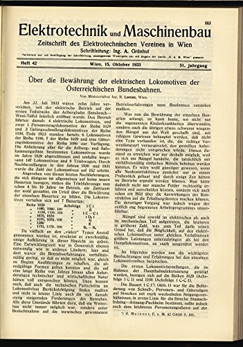 Read Über die Bewährung der elektrischen Lokomotiven der Österreichischen Bundesbahnen, in: ELEKTRONIK UND MASCHINENBAU, Heft 42/1933 (51. Jg.). PDF